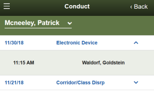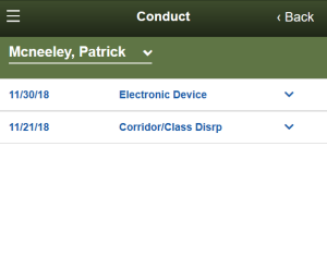 Viewing Student Conduct (Aspen Mobile)